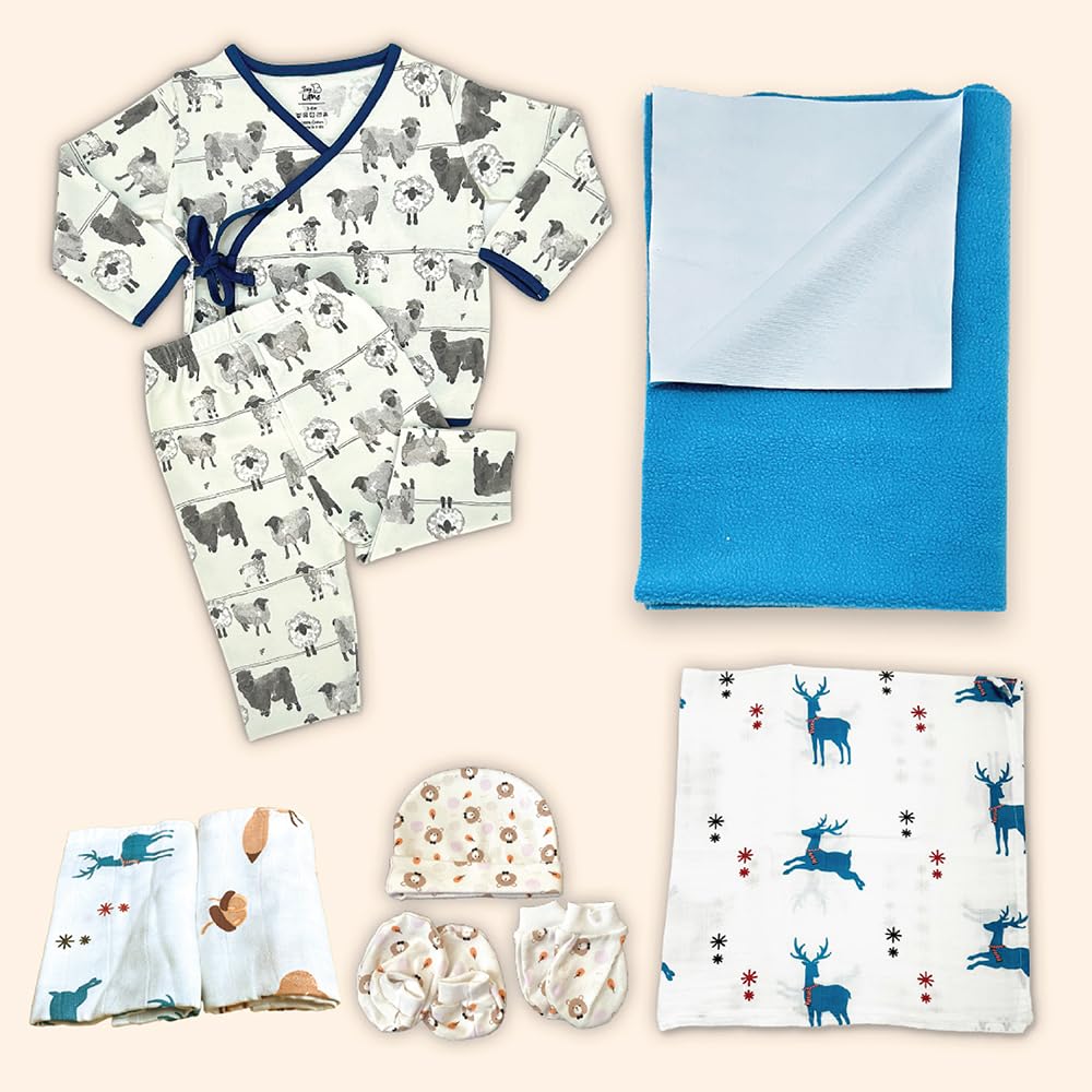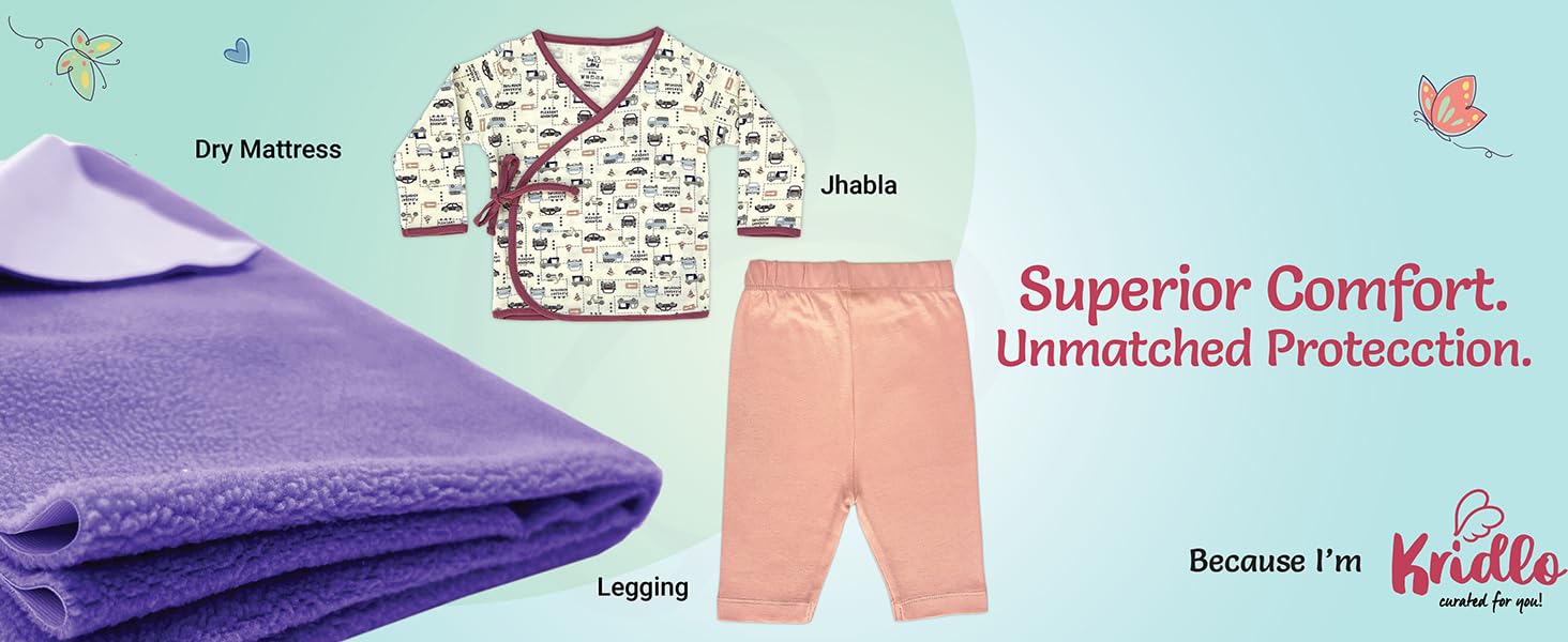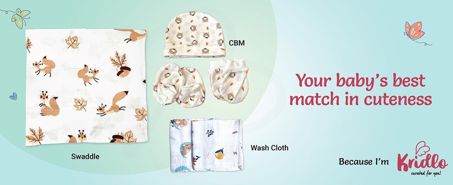Complete Newborn Essentials Set: This all-in-one Kridlo baby gift set includes everything new parents need—baby towels for 0 to 2 years, soft swaddle, dry mat, washcloths, jhabla, pant, cap, booties, and mittens—making it perfect for both gifting and daily baby care