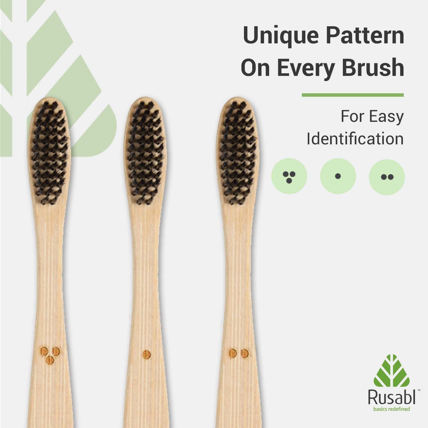 EASY IDENTIFICATION: Our bamboo toothbrush pack of four is designed for eco-conscious families. Each toothbrush features a unique dotted pattern for easy identification, so every member of the family can quickly find their brush.