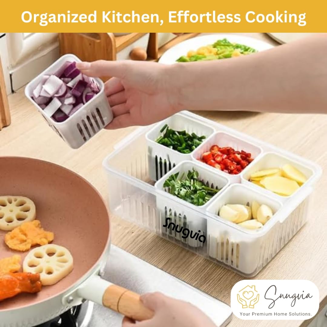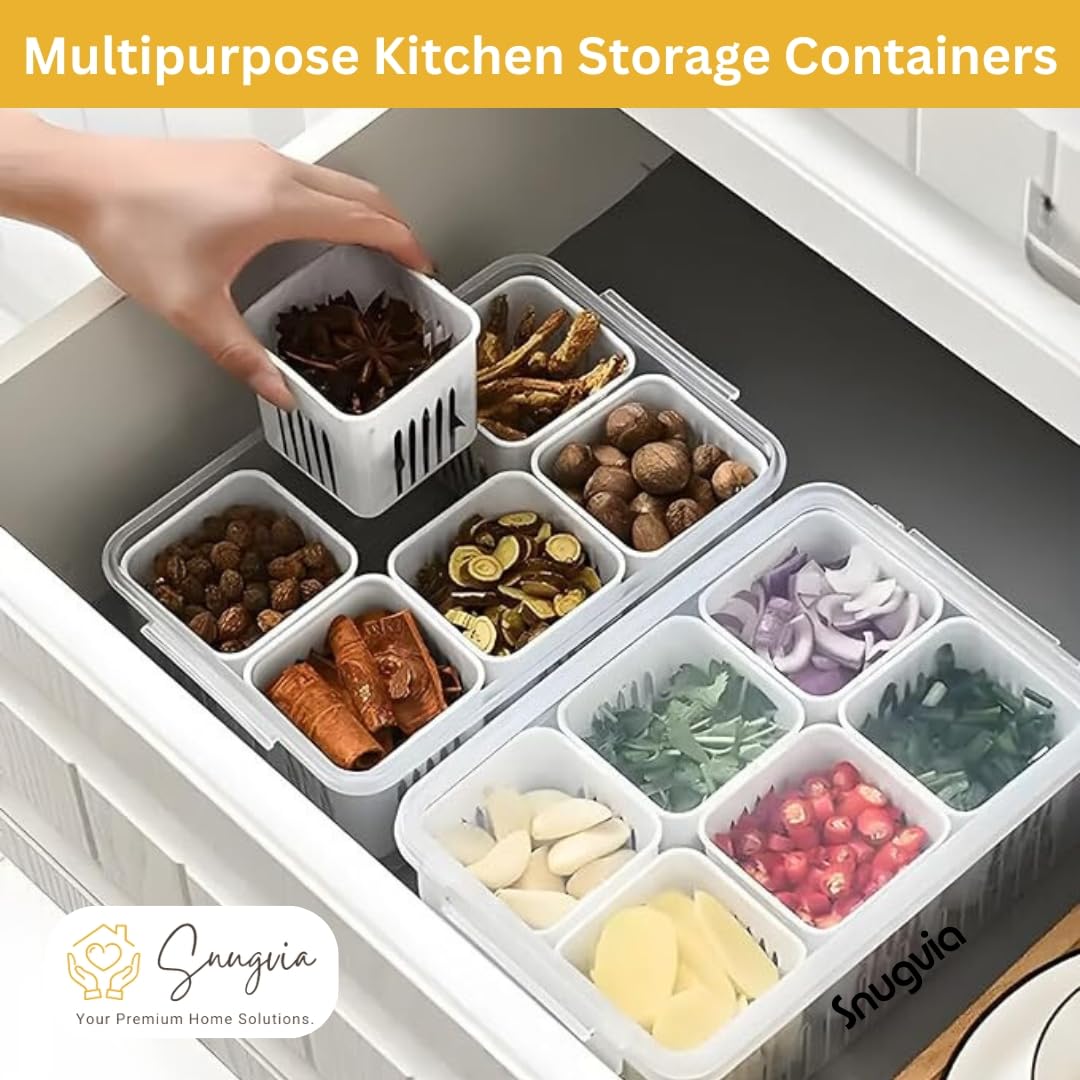 The Snugvia Fridge Storage Containers Set comes in versatile sizes, ideal for storing everything from spices to fresh vegetables. Each container is thoughtfully designed to meet a variety of storage needs. Made from premium, durable materials, these containers ensure long-lasting performance, providing a reliable and stylish way to store your food items.